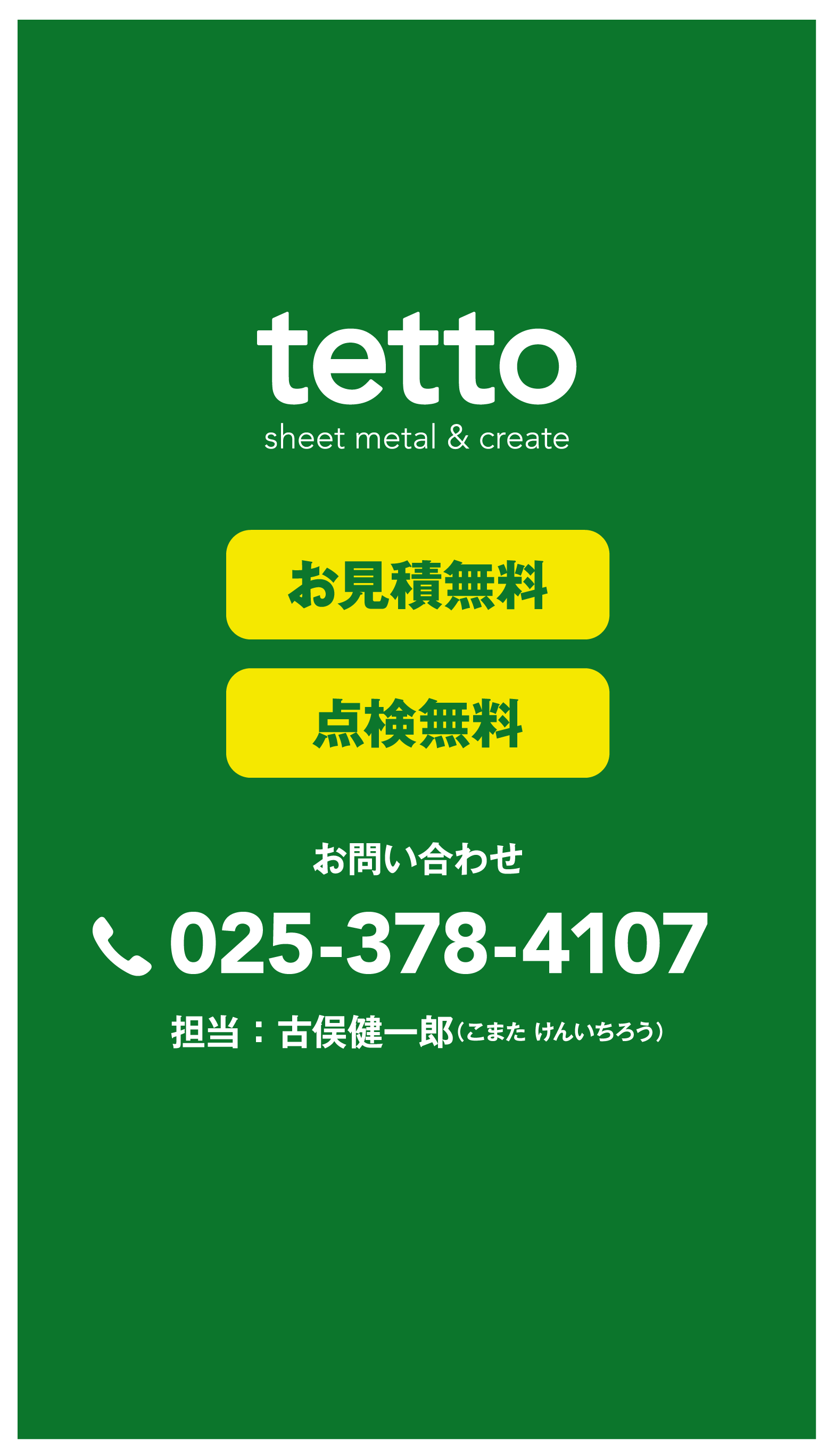 先代の父から2代目として「古俣建板」を継ぐ。令和2年4月1日「株式会社テット」に法人化。数年前に不慮の事故で隻眼になりましたが、一職人としてお客様のお手伝いをさせて頂いてます。生まれてからずっと新潟に住んでいる経験を生かし、新潟の気候風土に合わせた施工プランをご提案いたします。